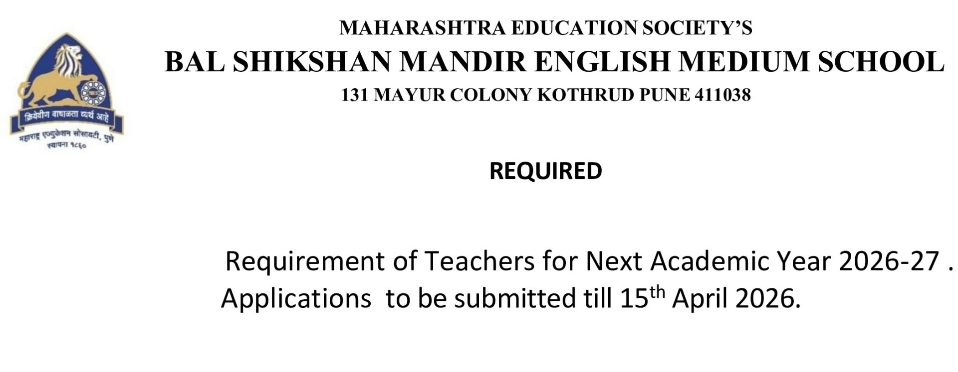 M.E.S. Balshikshan Mandir English Medium School started in 1979 at M.E.S. Balshikshan Mandir Marathi Medium School on Bhandarkar road. It shifted to Sou. Vimlabai Garware High School and was later transferred to the current IMCC building in a format of one division having 60 students in each class. First Std X batch appeared in 1991…