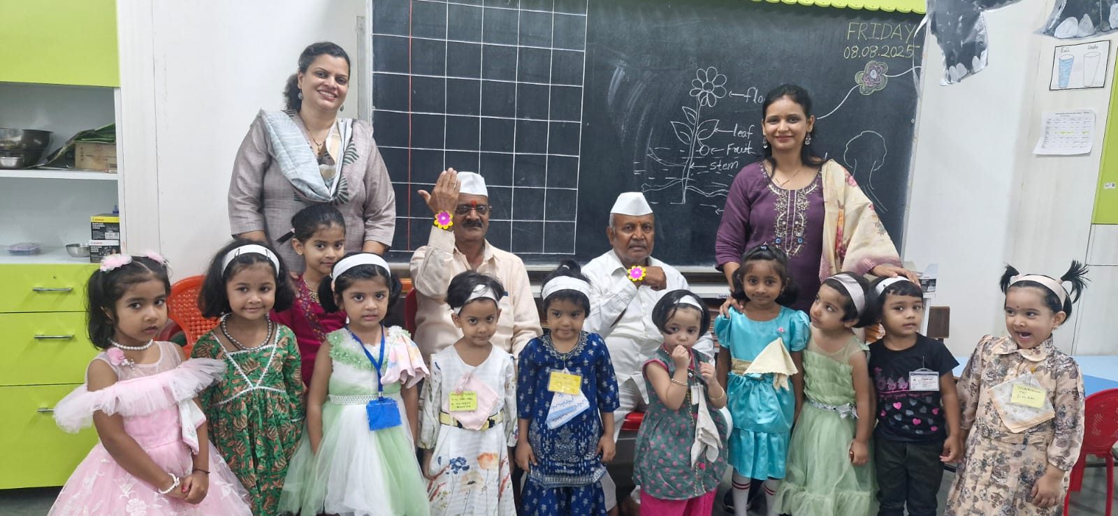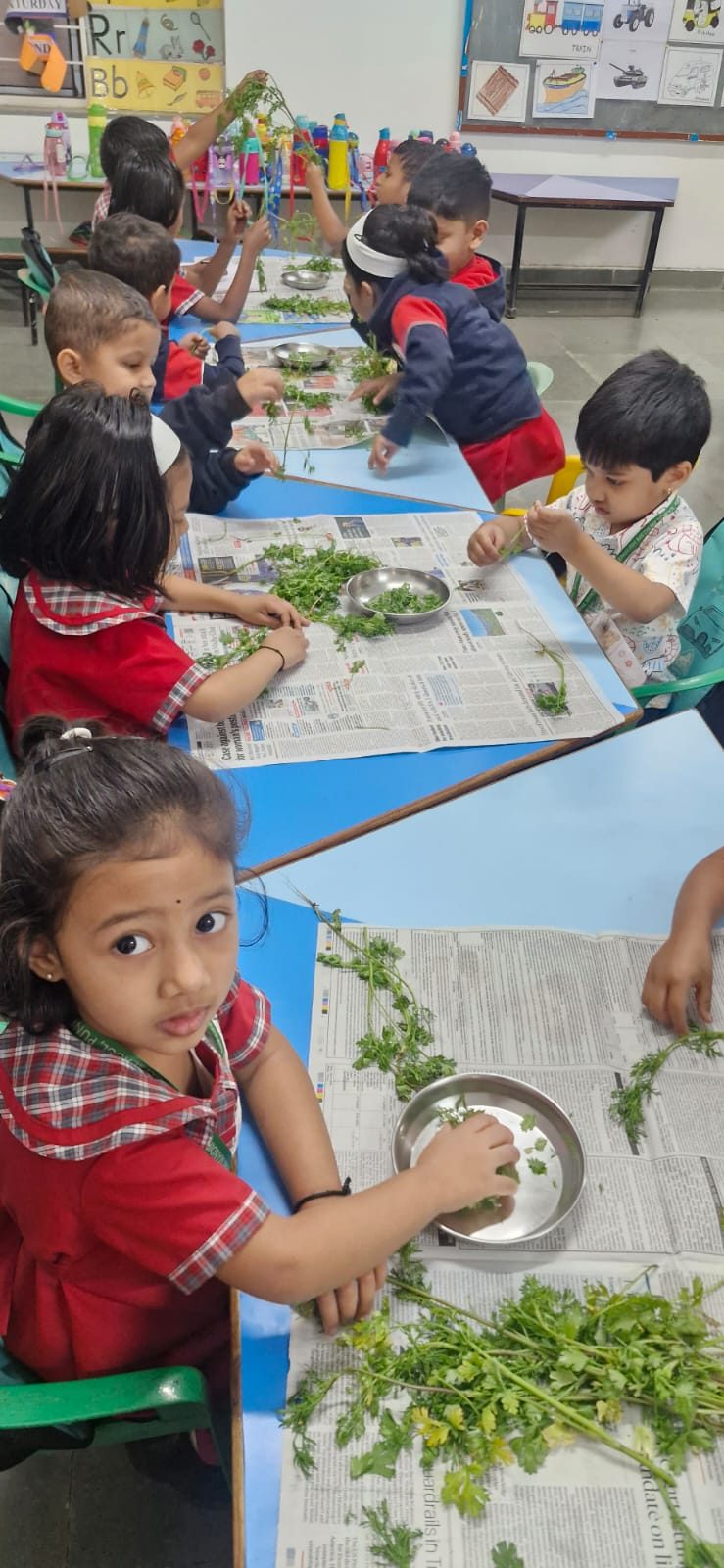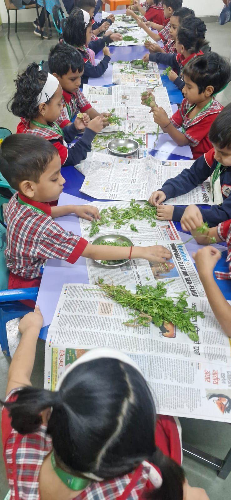 Sr. KG Nature Bond: Our Senior KG students used spinach seeds to create their Rakhis. In a symbolic move, they tied these to trees, pledging to protect Mother Nature just as she provides us with oxygen, shade, and life.